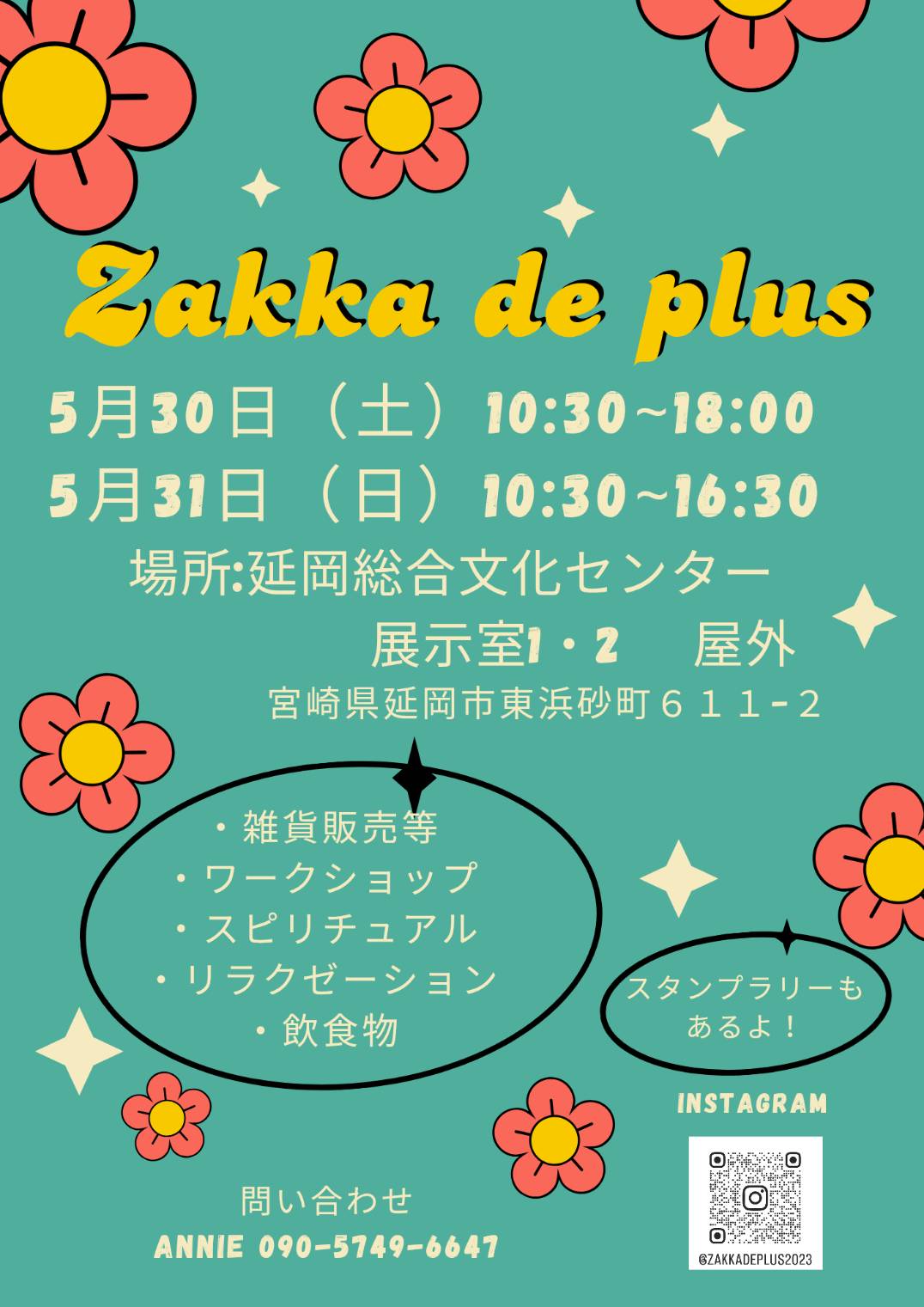 5月30日(土)10時30分~18時、31日(日)10時30分~16時のZakka de plusを主催されるそうです♪