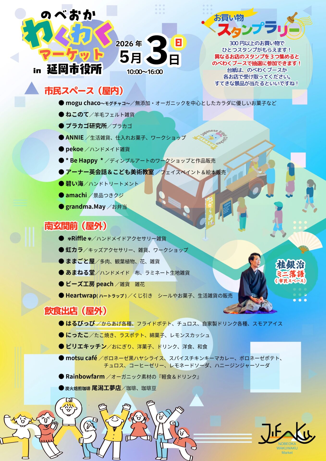 5月3日(日)の10時~16時に開催される「のべおかわくわくマーケットin延岡市役所」の出店や